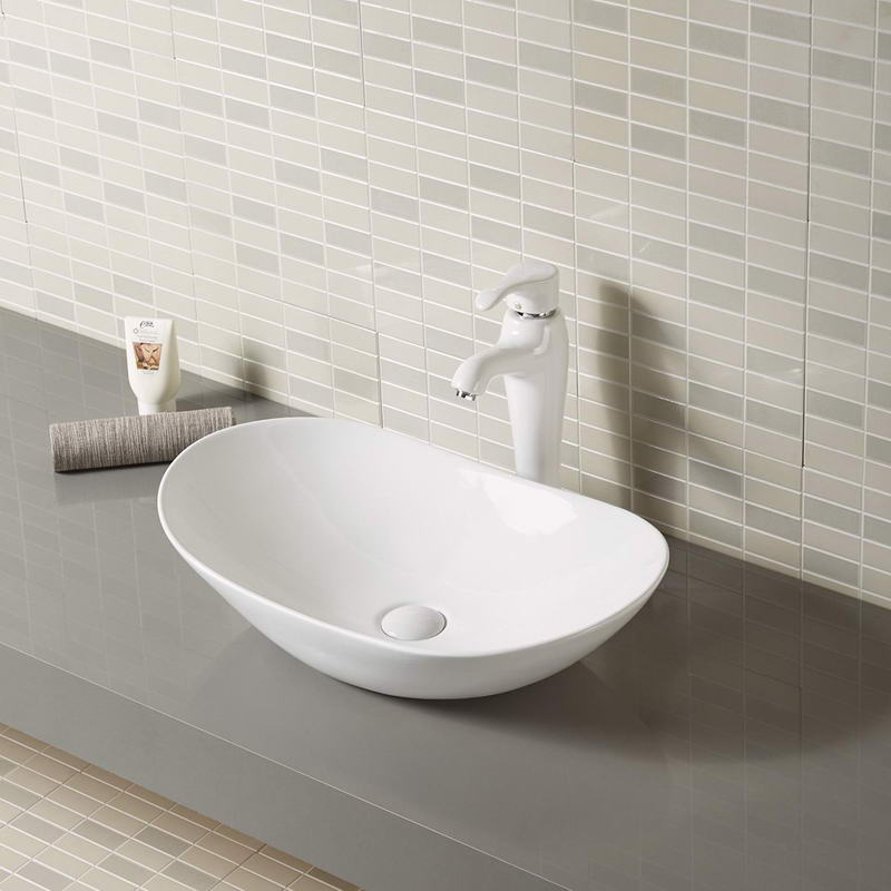 White Glazed Ceramic Oval Counter Basin