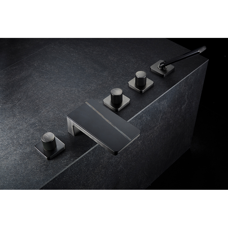 Luxury Tub Filler Waterfall Tub Faucet Gun Grey Deck Mount Bathtub Faucets Brass Bathroom Faucets