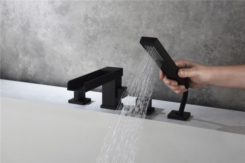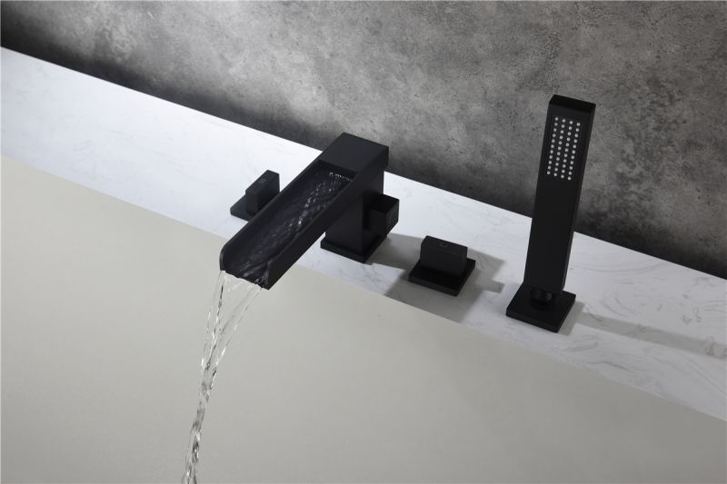 The design of deck mounted tub faucet ensures resistance of corrosion and tarnishing, simple and elegant style with smooth lines and curves will give your bathroom a sleek