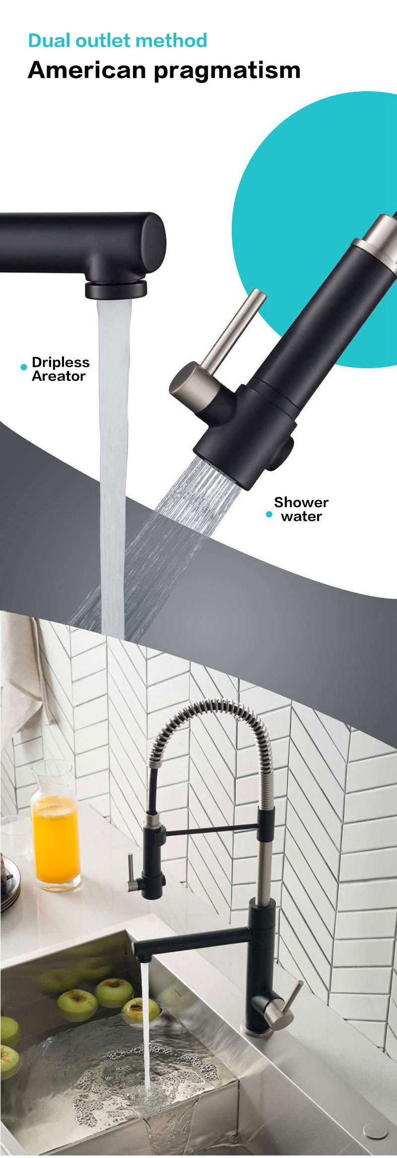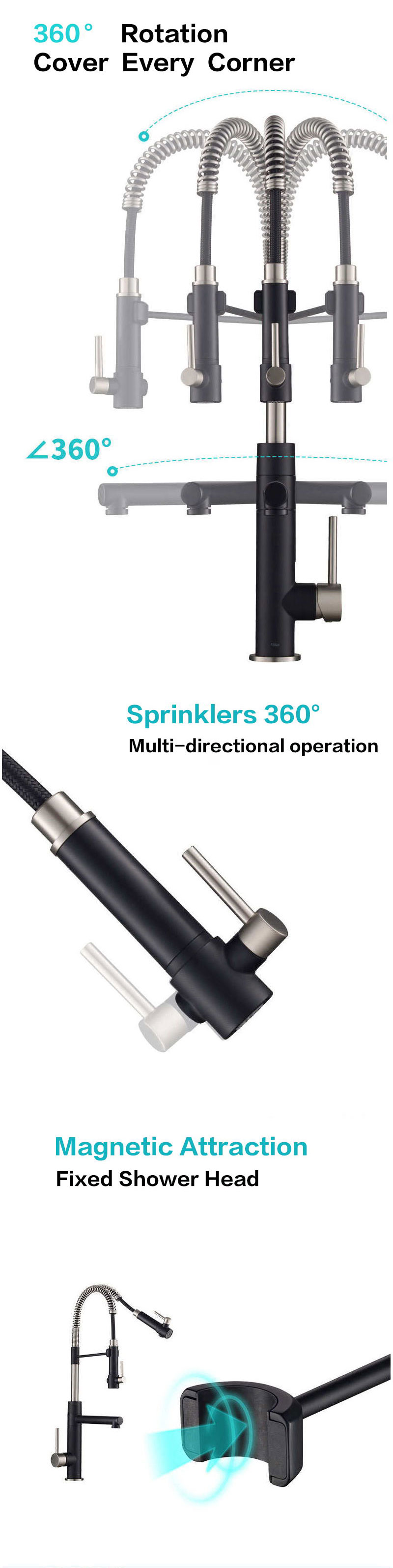 Kobia kitchen tap durable with all-metal construction, solid brass body and stainless steel spring spout; high-arc spout swivels 360 offers ample clearance for cleaning your largest cookware.