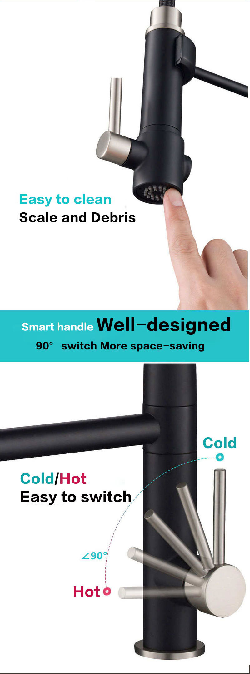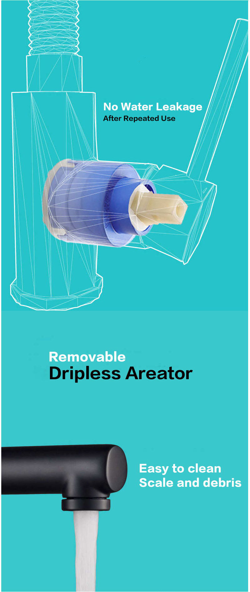 Pull down kitchen faucet's magnetic docking snaps sprayhead back into place for a secure hold; easy-clean rubber nozzles allow you to wipe away mineral build-up for a strong long-lasting flow; premium ceramic cartridge provides long-lasting leak-free use