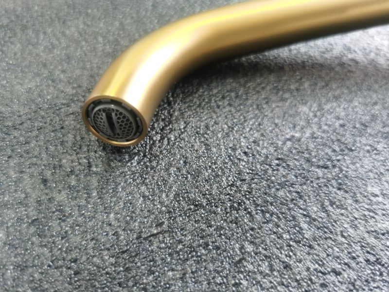 Brushed gold basin faucet surface finished texture build to resist daily scratches corrosion or tarnishing and matching the industrial style.