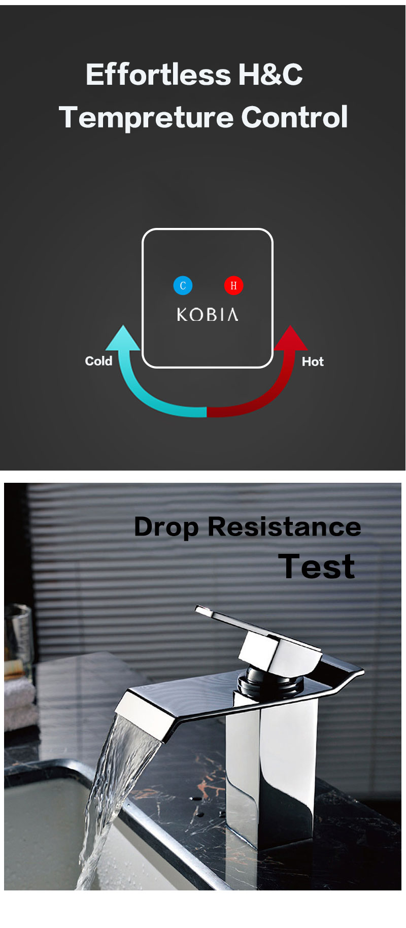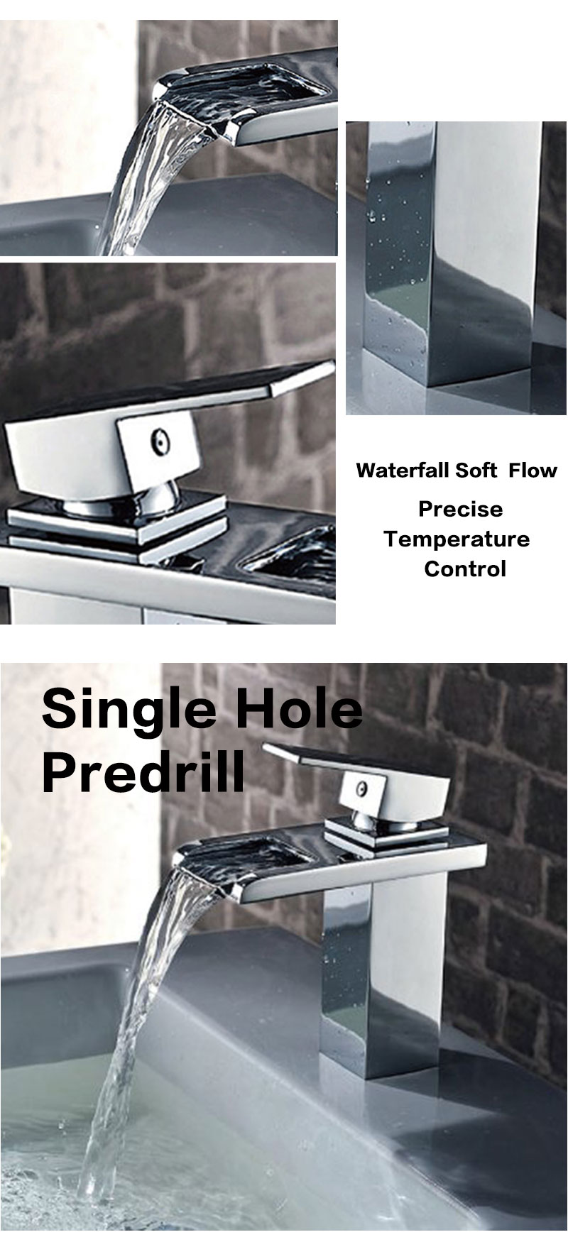 Chrome Bathroom Sink Faucet, Single Handle Single Hole Waterfall Spout Bathroom Faucets With Deck Water Supply Hose