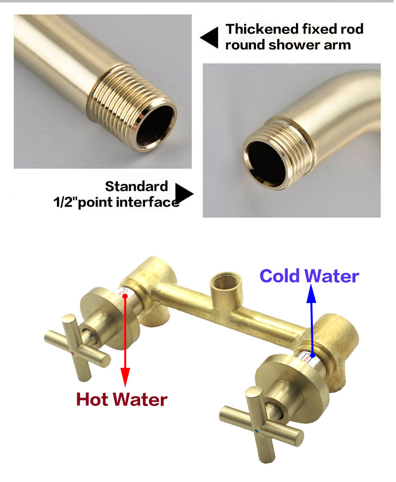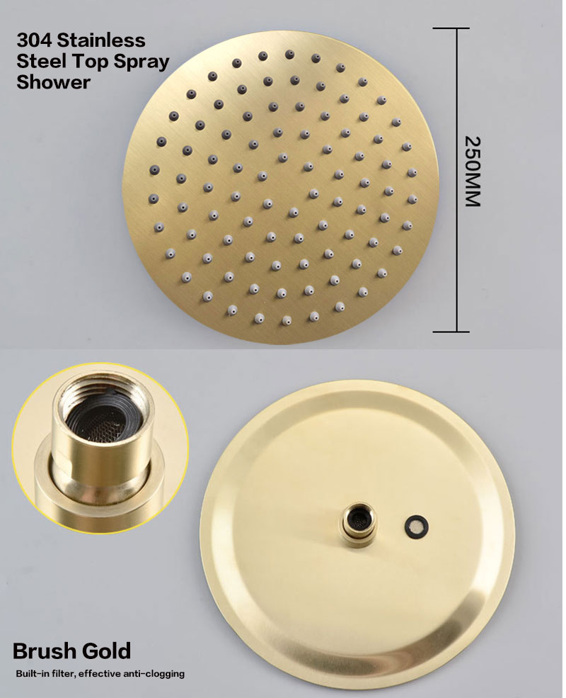 Bathroom luxury style top shower, two color choices of brushed gold and chrome. 2-in-1 diverter + hot/cold water control, to offer you the most comfortable bathing experience.
