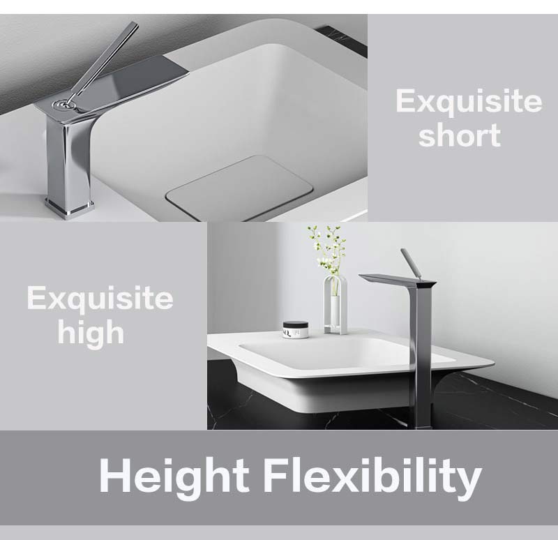 Chrome finish is highly reflective for a mirror-like look that works with any decorating style. Long lever handle makes the temperature and flow rates change in an effortless way.