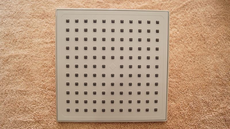 Big and thin overhead shower provides full-body coverage for natural raining experience