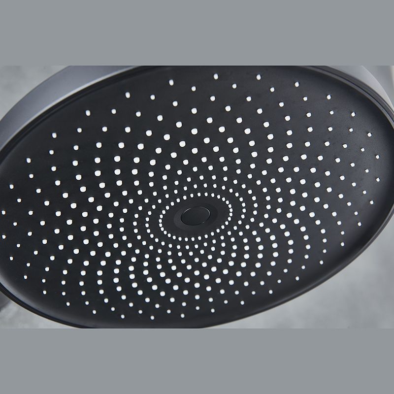 1.brass shower arm 2.PH59 copper faucet body + magic box 3.brass adjustable water adaptor. 4.ABS 10 inches rain shower and ABS 5 inches handhled shower head & PVC shower hose