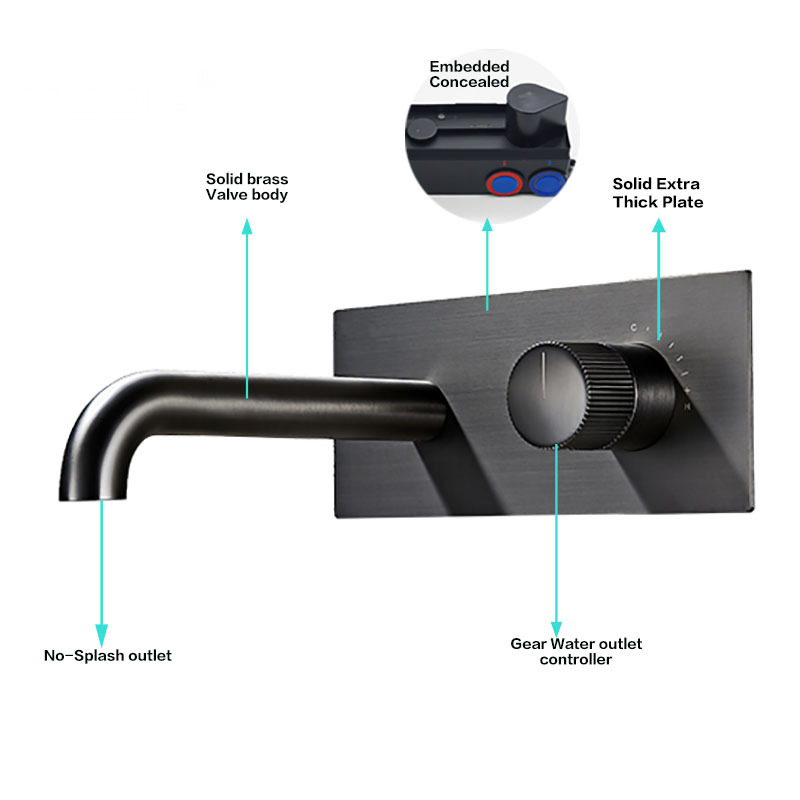 Modern Wall Mount Basin Faucet Gunmetal Tapware Brass Vessel Basin Tap Faucet with Concealed Valve for European