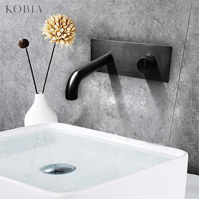Modern Wall Mount Basin Faucet from KOBIA, anti-fingerprint surface treatment, 100% factory inspection, 59%A solid brass construction ensure durable and long lasting.