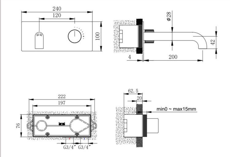 | Supply | Hot and cold water | Installation | Wall Mounted |