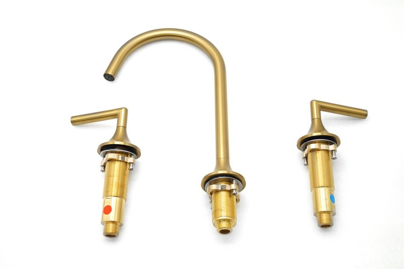 Brushed Gold Sink Faucet 2 Handle Vanity Lavatory Basin Restroom Bath Sink Waterfall Spout Tap Faucets