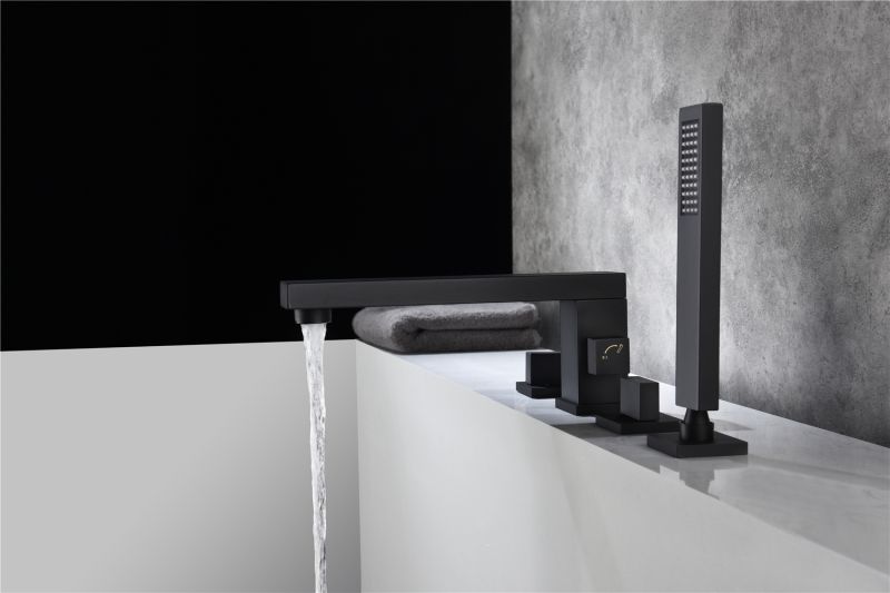 The design of deck mounted tub faucet ensures resistance of corrosion and tarnishing, simple and elegant style with smooth lines and curves will give your bathroom a sleek