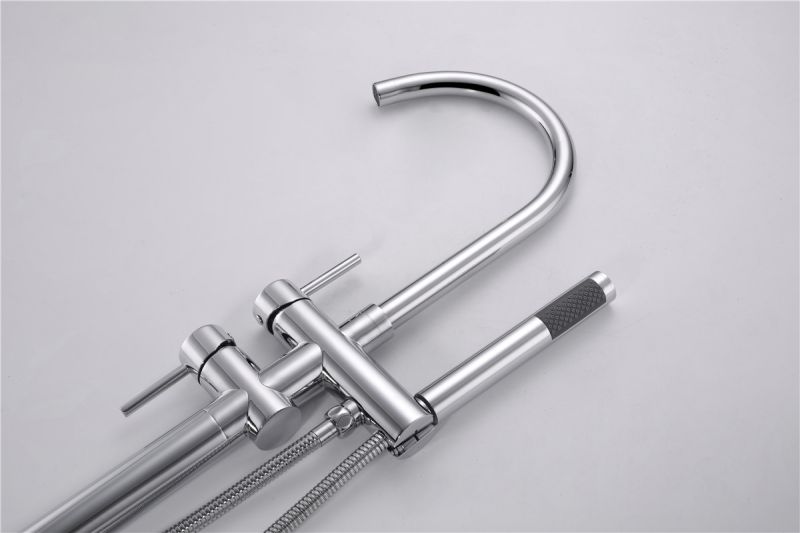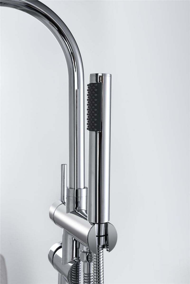 Floor Mount Bathtub Faucet Freestanding Tub Filler Chrome Finish Standing High Flow Swivel Spout Shower Faucets with Handheld Shower Mixer Taps